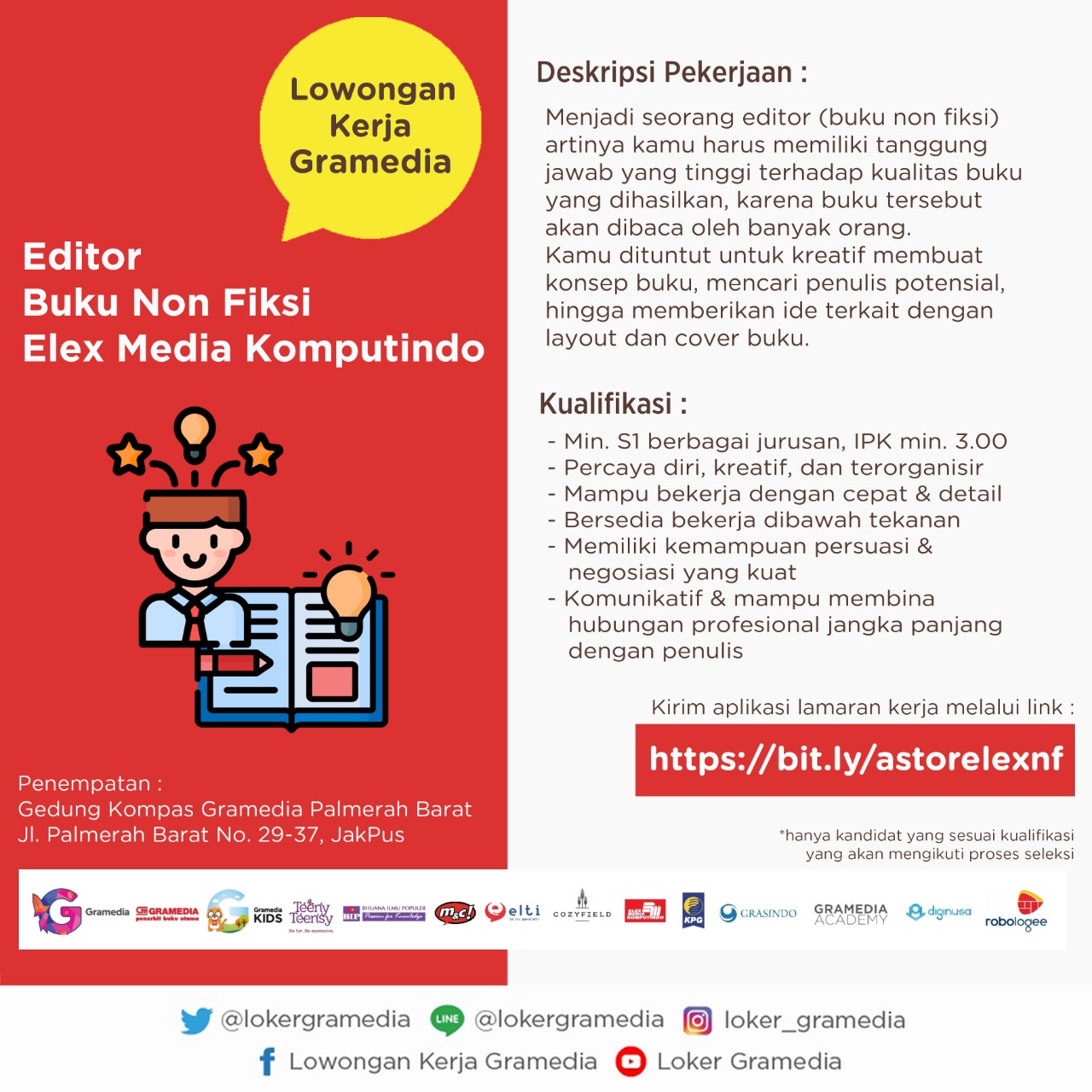 Lowongan Editor Naskah : Nah Grameds Kali Ini Penerbit Lowongan Kerja Gramedia Facebook / Check spelling or type a new query.. Maybe you would like to learn more about one of these? We did not find results for: Check spelling or type a new query.